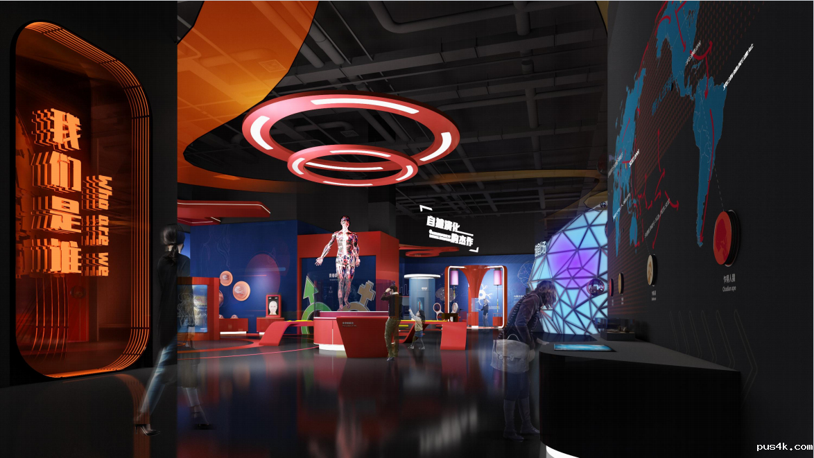 该展厅以“我们从哪里来?我们是谁?我们到哪里去?”为展示脉络,围绕“智慧”诠释人类从生命起源开始,逐步适应环境、探索自然、改造自然再到与自然和谐共生的发展历程。展厅展示内容结合黄河文明与河南特色,运用多样化展示手段,让公众在参与体验中感受人体生命的奥秘及人类创造的文明,思考人类命运共同体的责任与担当。