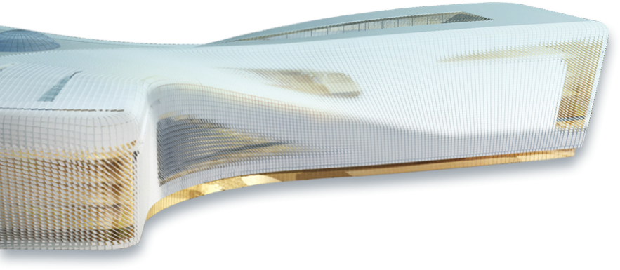 "科技磁场"——设计灵感来源于河洛文化意向,建筑形态宛如黄河与洛河自然交汇形成的天然造型,又如飞鸟展翼,寓意河南腾飞、中原崛起。