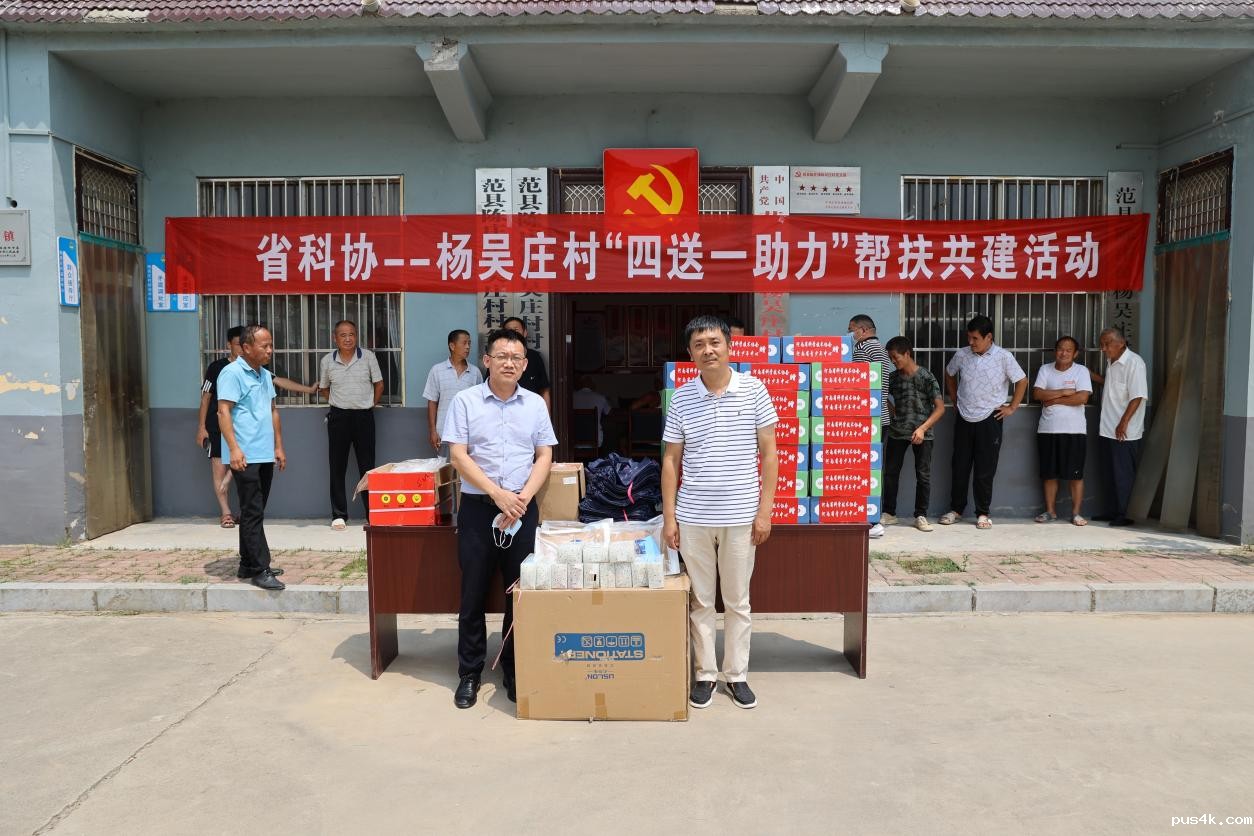 8月2日,省科协党组成员、副主席邓洪军率队到范县陈庄镇杨吴庄村开展“四送一助力”帮扶共建活动,并对驻村帮扶工作进行调研,对省科协驻村工作队进行慰问。省科技馆党总支书记蒋云鹏参加活动并向村小学捐赠学习用品和科学用具。
