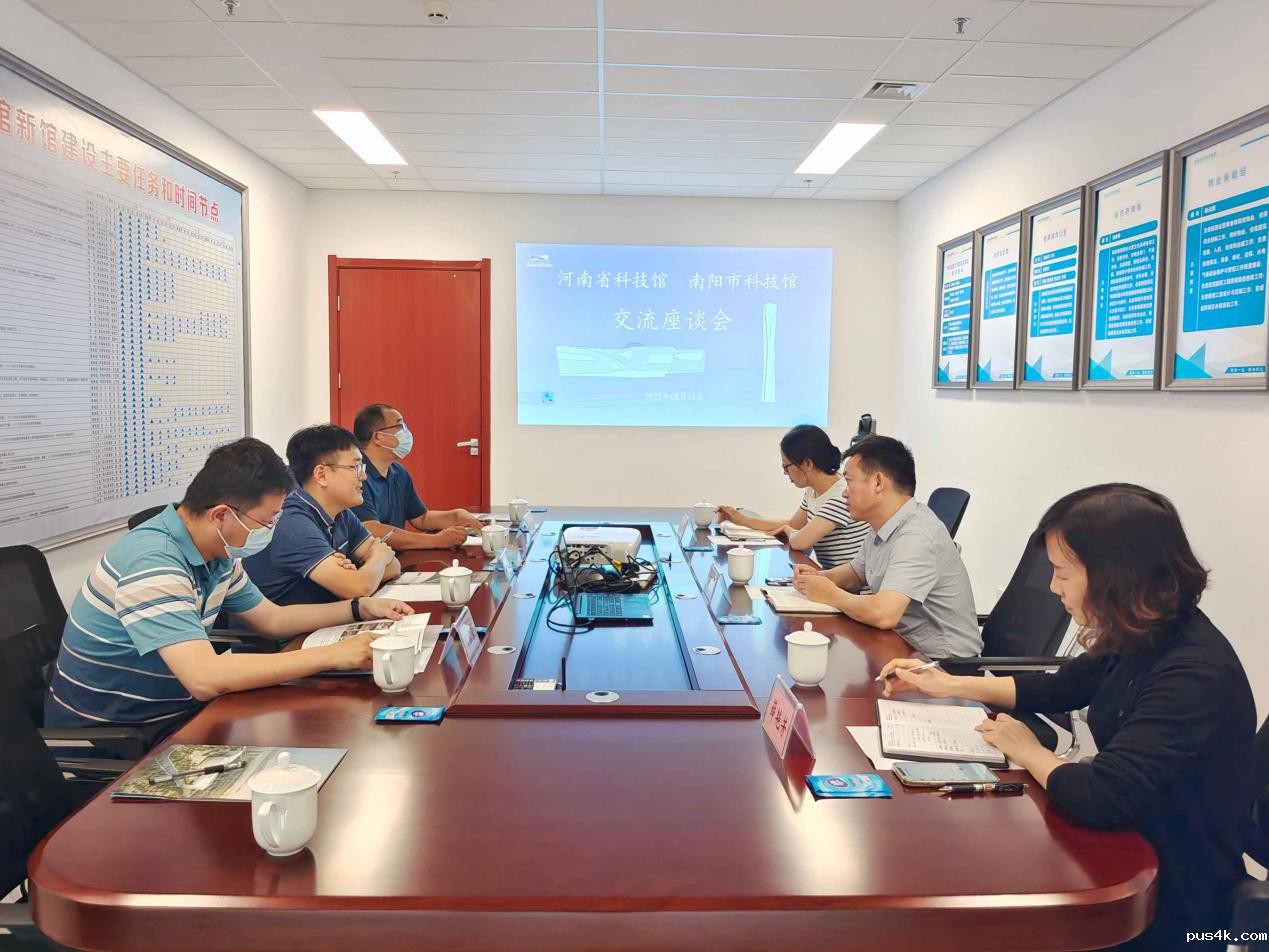 8月11日,南阳市科技馆副馆长刘扬一行到省科技馆新馆,就科技馆展教工程建设等有关工作考察调研。省科技馆党总支书记蒋云鹏参加座谈会并进行交流讨论。