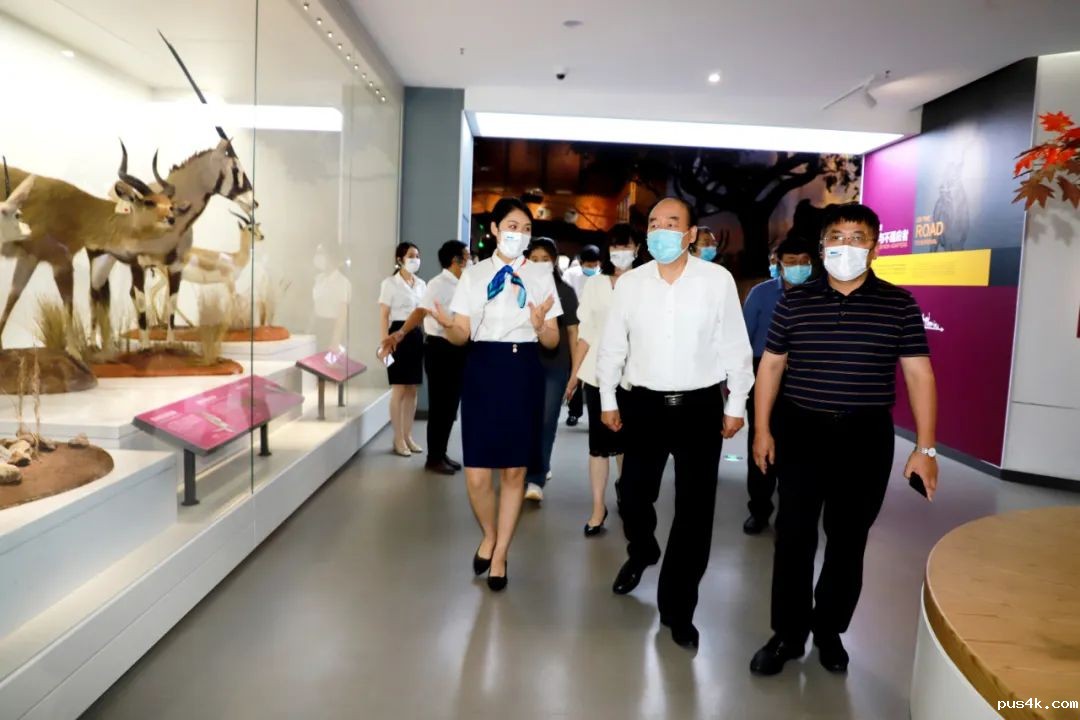 徐济超一行参观了“动物家园”“创享空间”等常设展厅,现场了解了新馆建设与运行筹备进展情况。