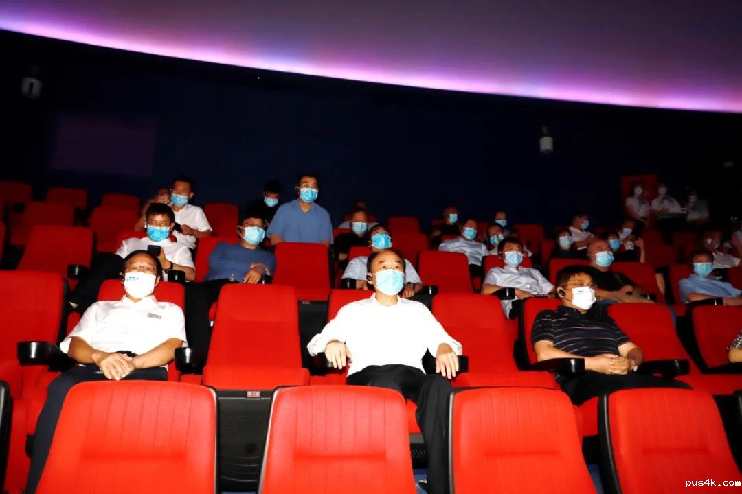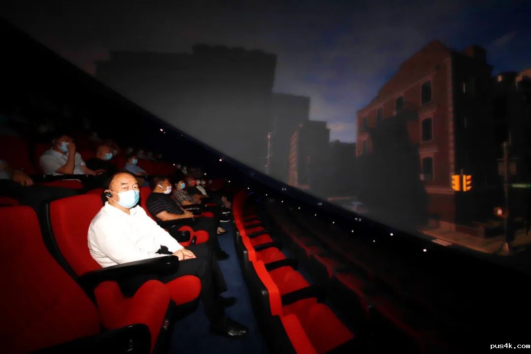在球幕影院的设备调试现场,调研组一行进行了观影体验。犹如篮球场大小的巨大银幕,立体式的影音效果,为现场观影人员带来了360度视域范围的视觉冲击,众人对此纷纷赞不绝口。
