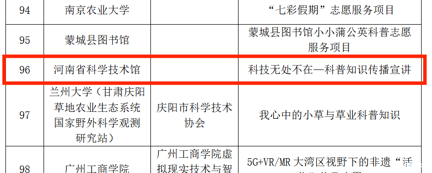 《中国科协宣传文化部关于“翱翔之翼”大学生科技志愿服务项目申报资助的通知》发布后,共有245家相关单位申报。经形式审查、专家评审,最终确定包括我馆在内的100家单位作为“翱翔之翼”大学生科技志愿服务项目拟资助对象。