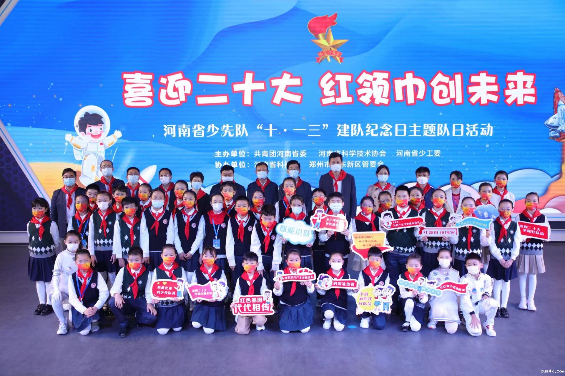 中国少年先锋队建队纪念日前夕。10月12日,由共青团河南省委、河南省科学技术协会、河南省少工委联合主办的“喜迎二十大红领巾创未来”河南省少先队“十·一三”建队纪念日主题队日在河南省科技馆新馆举行。省科协主席吕国范,团省委书记、省少工委主任王笃波为全省首家“少年科学院”科普实践基地、河南省科技馆少工委揭牌。省科技厅、省直团工委、省社科院、省科学院、省青年科技工作者协会、郑东新区等有关单位同志出席活动。