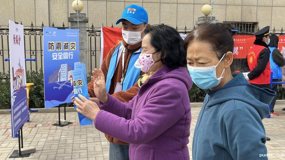 大学生科普志愿者结合现实案例,利用宣传页和展板从“找空间、莫钻柜、传信号、存体力、快躲避、做保护、别乱跑、树信心”八个方面向社区居民科普了地震发生时防震避险、应急逃生、自救互救等基本常识。