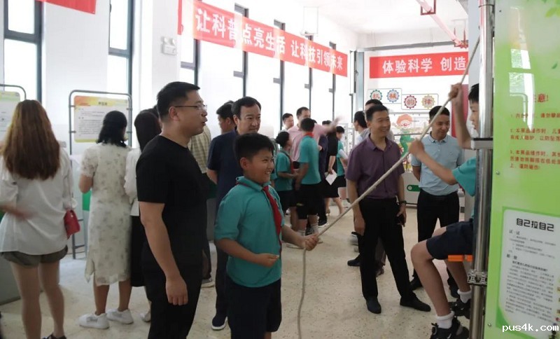 启动仪式后,参会领导和学生代表走进展厅,一边倾听工作人员介绍展品的科学原理,一边饶有兴趣地体验各项科技展品。